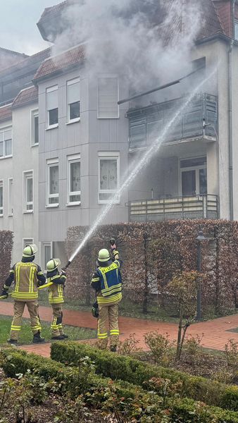 Bereits beim Eintreffen der ersten Kräfte war eine deutliche Rauchentwicklung im Bereich eines Balkons sichtbar.
